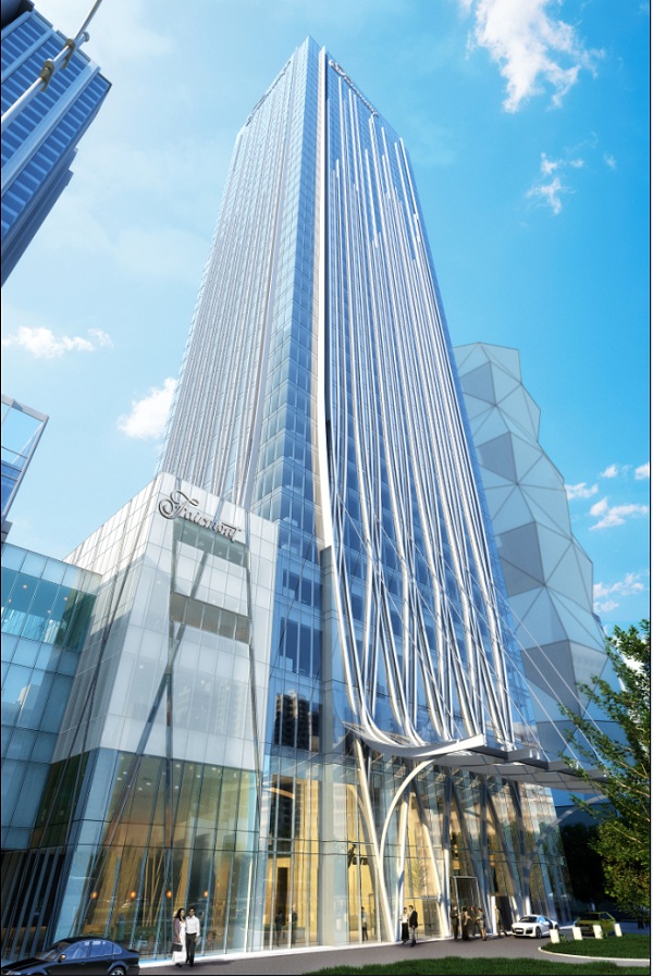 成都棕櫚泉費爾蒙酒店項目位于成都市天府中段大道199號,項目高約為178.8米,項目由地下4 層和地上41層組成,建筑面積6.7萬平方米,幕墻面積約3萬平方米。項目主要采用單元式玻璃幕墻、石材幕墻、鋁合金百葉、鋁板幕墻、鋁合金門窗等系統。