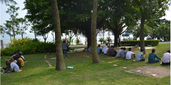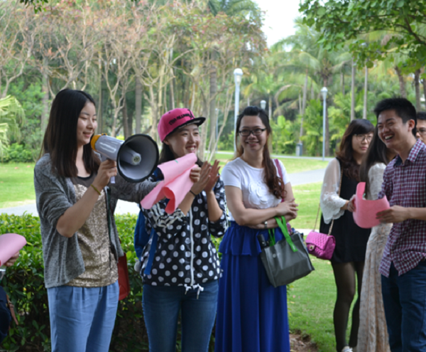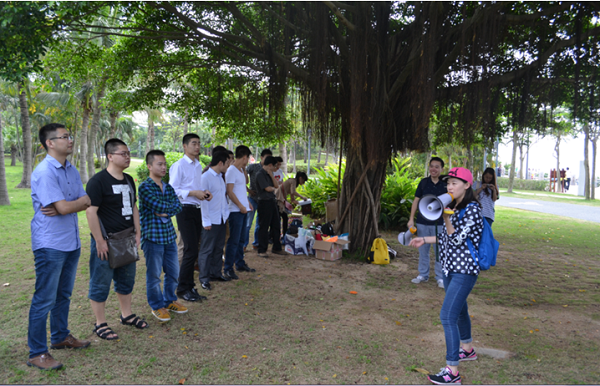 活動當天,大家意興盎然來到了深圳灣公園,通過簡單的自我介紹,在5分鐘時間內迅速找到自己的搭檔,然后進行互相介紹,之后每個人拿出自己精心準備的食物跟大家進行分享。分享過后大家迫不及待地投入到“報紙大聯盟”、“五毛一塊”、“幸福彼岸”、“群魔亂舞”“電動馬達臀”等游戲中。大家用歌聲、舞蹈和游戲傳遞著快樂與情誼,進一步拉近著彼此間的距離。一個個激動人心的互動小游戲將聯誼會推向高潮,一個個刁鉆的懲罰方式更令人捧腹。在“報紙大聯盟”、“幸福彼岸”的游戲環節中,大家踴躍參加,使出渾身解數,各顯智慧,用默契的配合共同爭創佳績。游戲之后,大家進入到了最神秘的“背對背的秘密”環節,男女生各站一排,相背而坐,大家依次將自己的心意卡放進了心儀異性的信封中。最后,大家兩兩相約,共同踏上單車盡享初夏深圳灣的風景。整個活動中,大家熱情交談,彼此了解興趣愛好,互留聯絡方式,活動之后還制作了聯誼會通訊錄,以便今后更好地繼續交流互動。