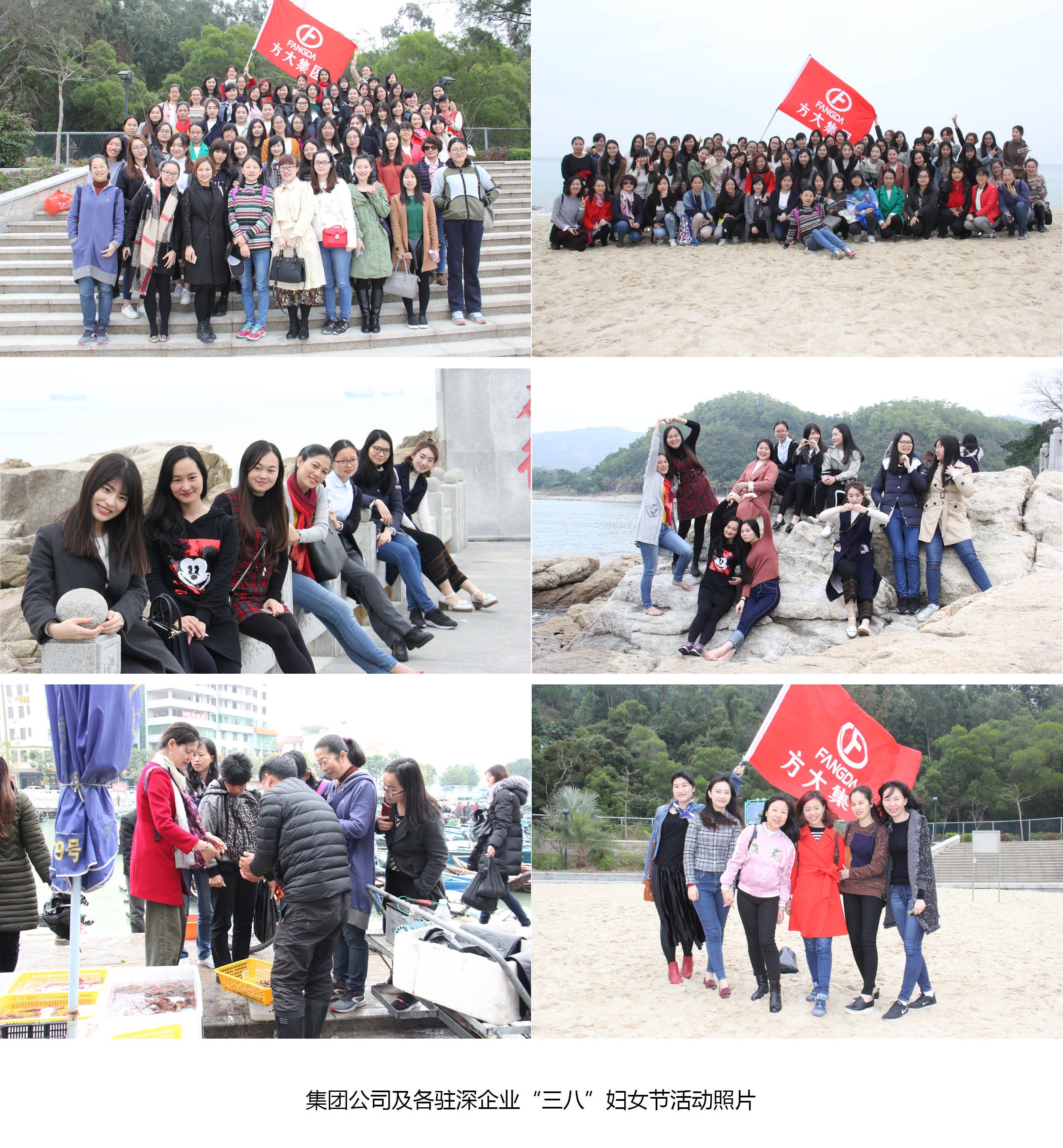 在深圳,集團(tuán)公司及各駐深企業(yè)組織全體女員工前往深圳東部海岸進(jìn)行休閑觀光及聚餐活動(dòng)。下午1點(diǎn)30分,駐深企業(yè)女員工一行80余人在深圳方大大廈集結(jié)完畢,隨即分乘兩輛大巴前往深圳東部官湖角海灘。約90分鐘車程后,觀光團(tuán)達(dá)到目的地。在這個(gè)屬于女性同胞的節(jié)日里,天公也別樣作美,上午淅瀝瀝的大雨,一到下午就停了,地面積水也逐漸干了。美麗的官湖角海灘上,暖風(fēng)輕拂,碧海一望無(wú)際。美麗的方大女員工們?cè)诤┥虾嫌傲裟睿Y(jié)伴游玩。她們或放眼眺望欣賞海景,或高舉手機(jī)專注地自拍,或并肩攜手踏浪,其樂(lè)融融。離開官湖角海灘后,方大女員工們一道專程前往惠陽(yáng)澳頭村聚餐,一品滋美的海鮮大餐。