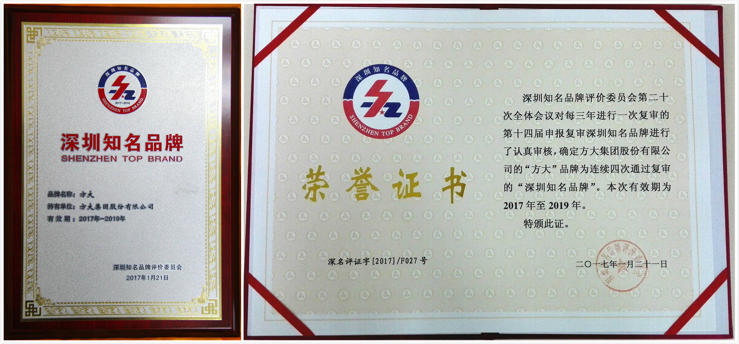 4月20日,在第十四屆深圳知名品牌成果發布會上,方大集團股份有限公司“方大”品牌被授予“深圳知名品牌”榮譽稱號,這是“方大”品牌連續第四次獲此殊榮。
