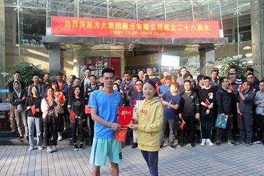 2019年12月28日,是方大集團股份有限公司成立二十八周年紀念日。為熱烈慶祝這一重要節日,公司舉辦了升旗儀式、“悅動方大”積分賽以及晨跑等系列活動,廣大員工踴躍參與。