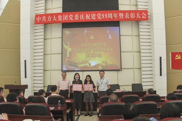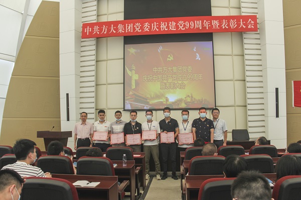 2020年7月1日,中共方大集團(tuán)黨委慶祝中國共產(chǎn)黨成立99周年暨表彰大會(huì)在深圳方大大廈報(bào)告廳召開。會(huì)議對方大集團(tuán)先進(jìn)黨組織、優(yōu)秀共產(chǎn)黨員、優(yōu)秀黨務(wù)工作者進(jìn)行表彰,并組織預(yù)備黨員進(jìn)行入黨宣誓。方大集團(tuán)黨委書記魏越興出席會(huì)議并講話,會(huì)議由黨委委員、紀(jì)委書記周志剛主持,駐深企業(yè)全體黨員、駐外受表彰的先進(jìn)黨組織負(fù)責(zé)人代表、優(yōu)秀共產(chǎn)黨員、入黨積極分子參加會(huì)議。
