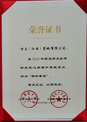 面對突如其來的新冠疫情,方大集團(tuán)積極有序開展疫情防控工作的同時不忘承擔(dān)社會責(zé)任。2020年1月30日,方大集團(tuán)旗下方大置地(江西)有限公司向江西省紅十字會捐款100萬元用于疫情防控。抗疫至今,方大集團(tuán)向紅十字會捐款和為租戶減免租金等金額超過550萬元,并向社會捐贈5萬只防護(hù)口罩。